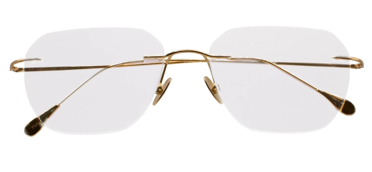 A beautiful frame in 24 Carat yellow gold finish, over stainless steel.  The lens can be made in any width. Â