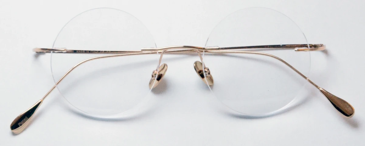 This spectacular frame is coated in 24 carat yellow gold, over a super lightweight, surgical stainless steel chassis.  The lens shape is perfectly round, and can be made with prescription lenses in any size. Â