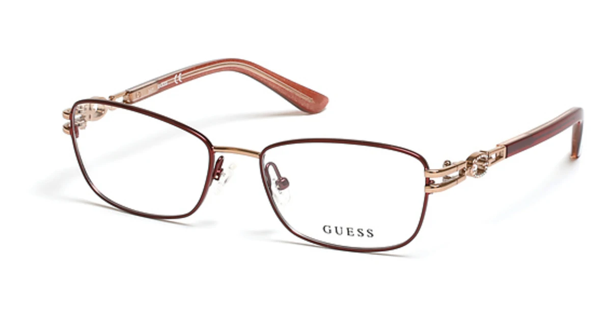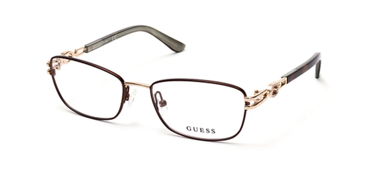 - Made of metal, the eyewear frame can be easily adjusted for a perfect fit with your prescription lenses. Your Guess purchase includes free standard shipping charges, and manufacturer packaging. You can add doctor verified prescription lenses, add custom polarized lenses, and many other lens options if you desire them. Like all Guess products, these eyeglasses frames provide the sophisticated and classic look that we all need.