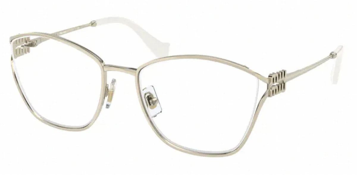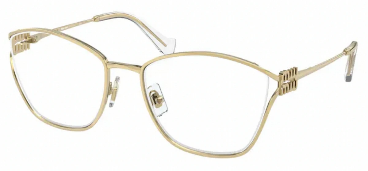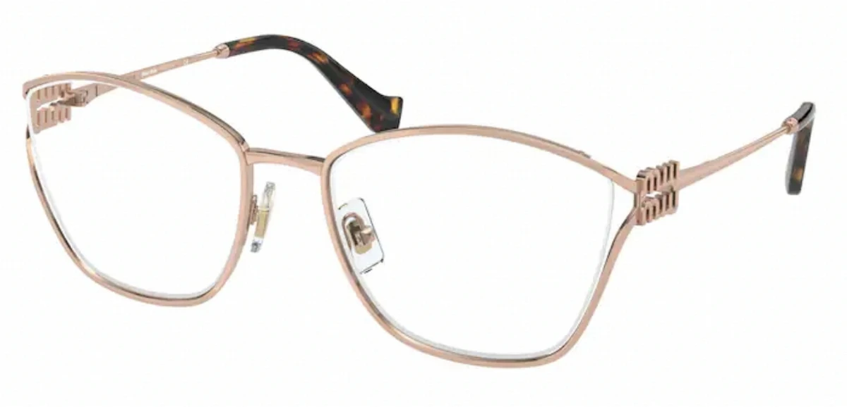 - Made of metal, the eyewear frame can be easily adjusted for a perfect fit with your prescription lenses. Your Miu Miu purchase includes free standard shipping charges, and manufacturer packaging. You can add doctor verified prescription lenses, add custom polarized lenses, and many other lens options if you desire them. Like all Miu Miu products, these eyeglasses frames provide the sophisticated and classic look that we all need.