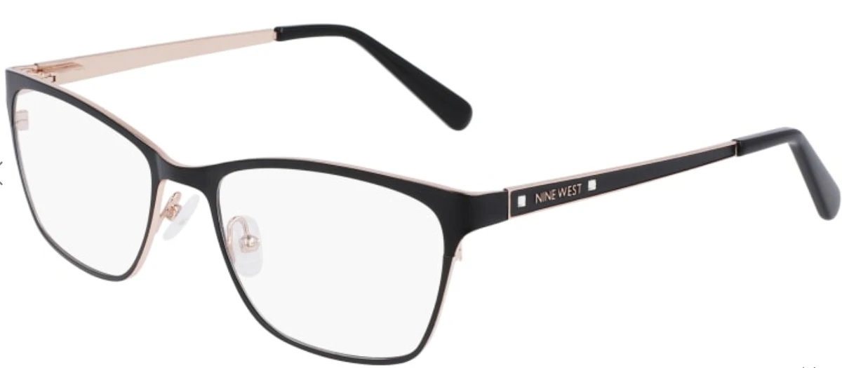 - Made of metal, the eyewear frame can be easily adjusted for a perfect fit with your prescription lenses. Your Nine West purchase includes free standard shipping charges, and manufacturer packaging. You can add doctor verified prescription lenses, add custom polarized lenses, and many other lens options if you desire them. Like all Nine West products, these eyeglasses frames provide the sophisticated and classic look that we all need.