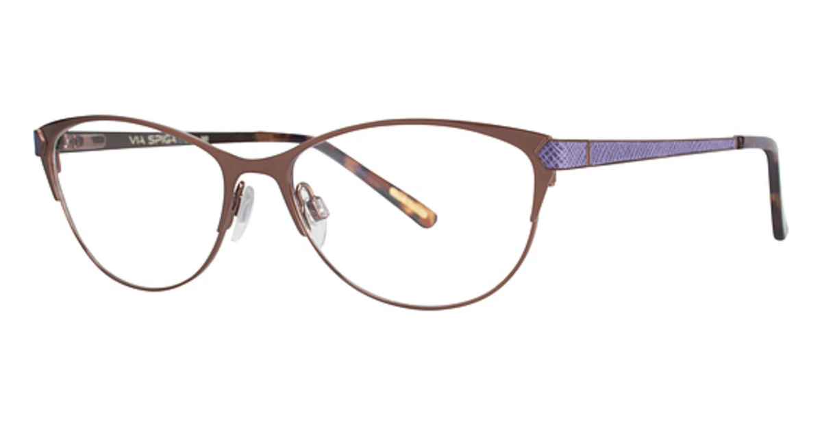 - Made of metal, the eyewear frame can be easily adjusted for a perfect fit with your prescription lenses. Your Via Spiga purchase includes free standard shipping charges, and manufacturer packaging. You can add doctor verified prescription lenses, add custom polarized lenses, and many other lens options if you desire them. Like all Via Spiga products, these eyeglasses frames provide the sophisticated and classic look that we all need.